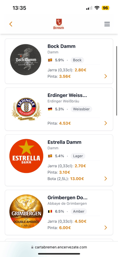 Desarrollamos cartas digitales especializadas para cervecerías y pubs cerveceros. Responsive, con QR, actualización en tiempo real y sin costes para tu establecimiento.