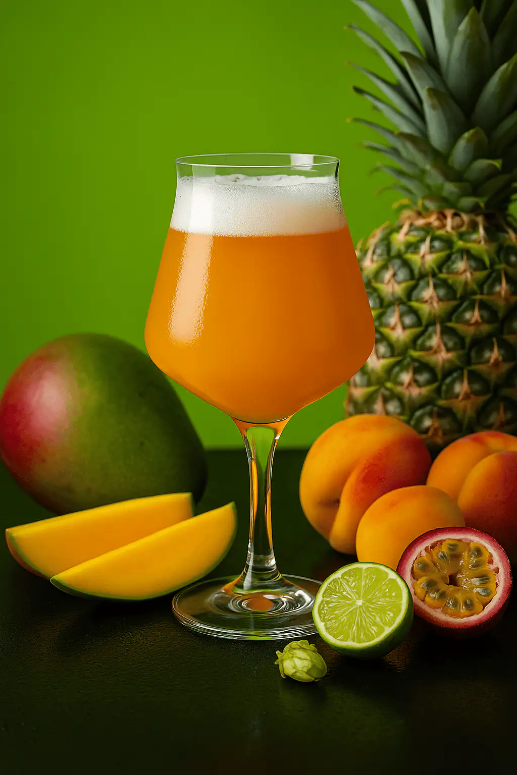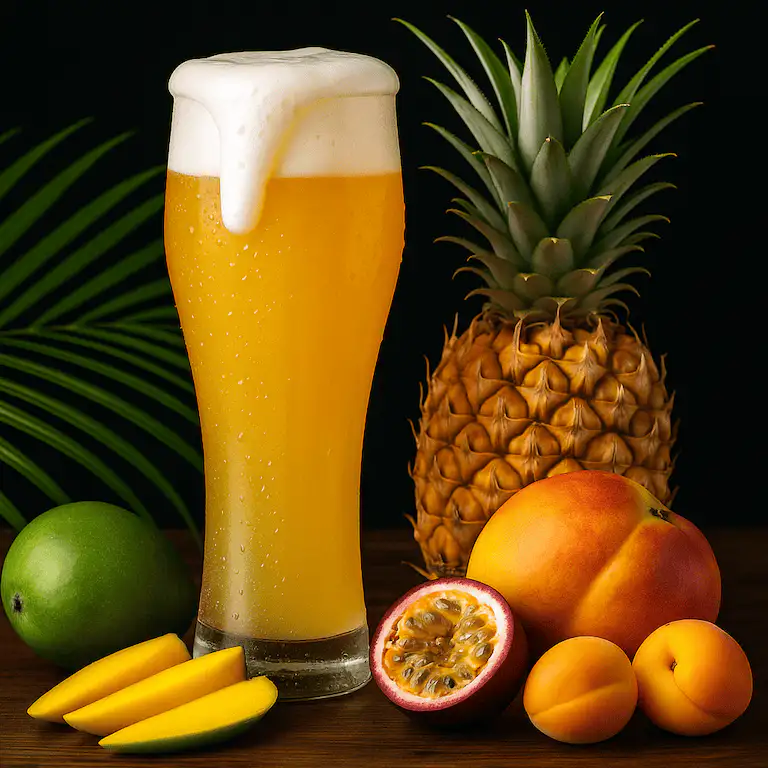 Las frutas tropicales amplifican los sabores de lúpulos modernos como Citra, Mosaic y Galaxy.