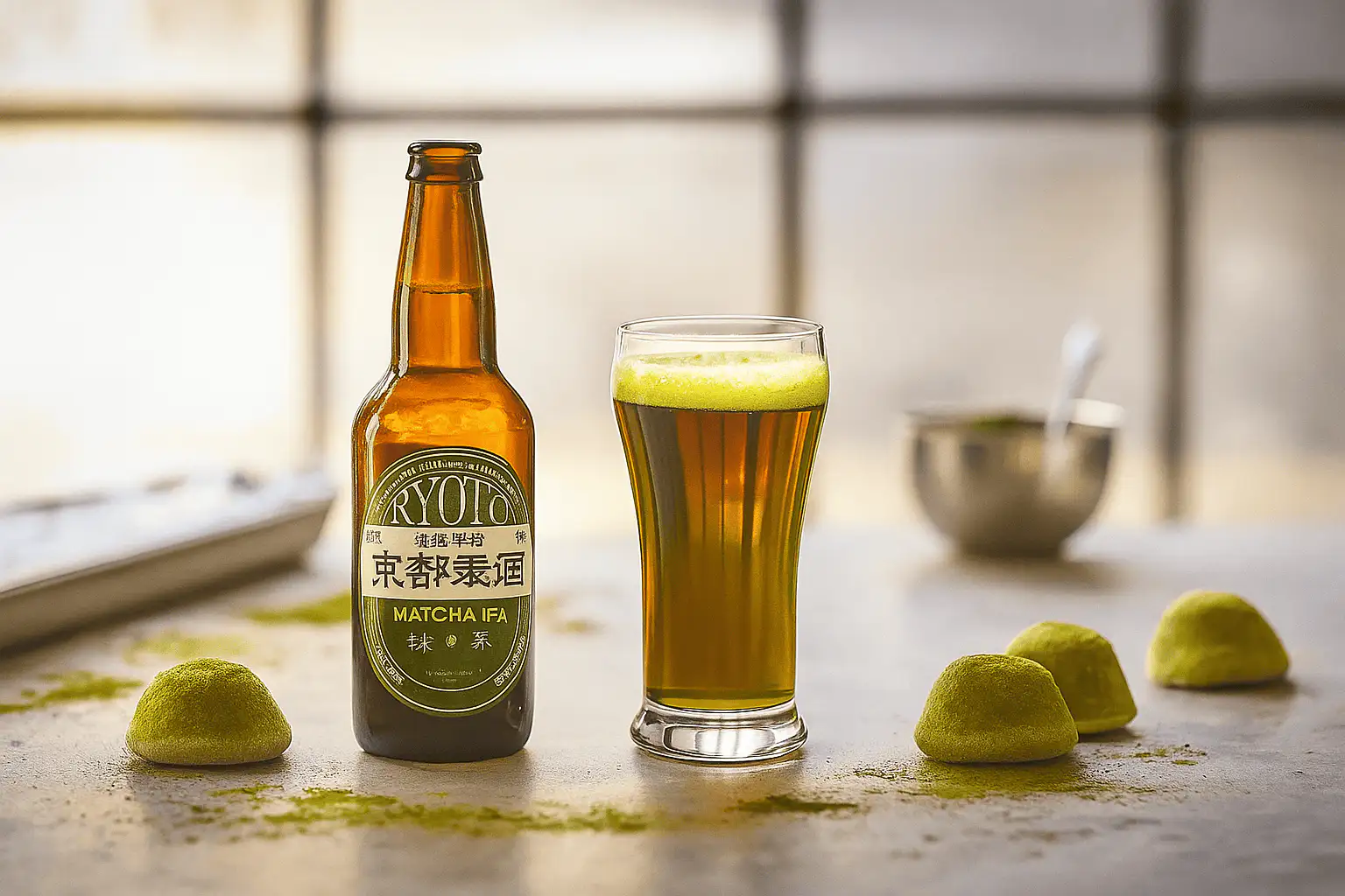 Una IPA moderna que incorpora té verde japonés (sencha o gyokuro) en fermentación o en dry-hopping. El té aporta notas vegetales frescas, un ligero umami y elegancia sutil.
